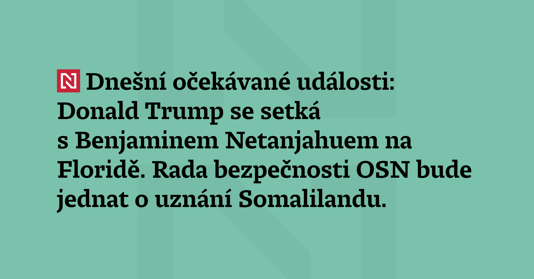Dnešní očekávané události: Donald Trump se setká s Benjaminem Netanjahuem na Floridě. Rada bezpečnosti OSN bude jednat o uznání Somalilandu.