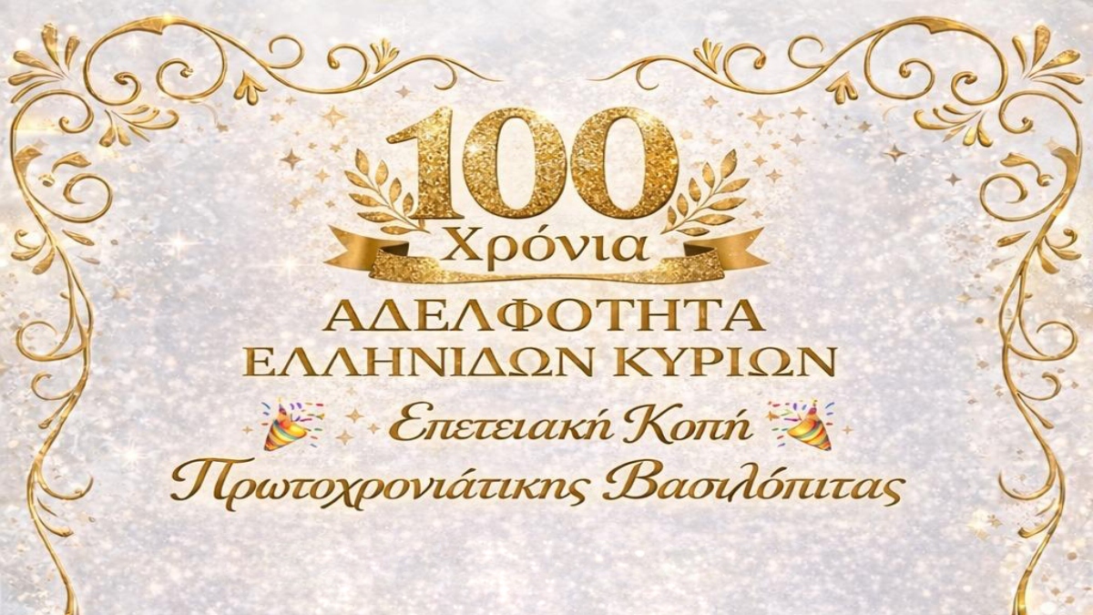 Η Αδελφότητα Ελληνίδων Κυριών συμπληρώνει φέτος 100 χρόνια συνεχούς παρουσίας και προσφοράς στον Ελληνισμό και την κοινωνία, σηματοδοτώντας μια ιδιαίτερα σημαντική επετειακή χρονιά. Στο πλαίσιο των εορτασμών, η Αδελφότητα απευθύνει θερμές ευχές για Καλά Χριστούγεννα, με υγεία και αισιοδοξία, και προσκαλεί τα μέλη και τους φίλους της στην κοπή της Πρωτοχρονιάτικης Βασιλόπιτας. Η εκδήλωση θα ... Περισσότερα www.ertnews.gr