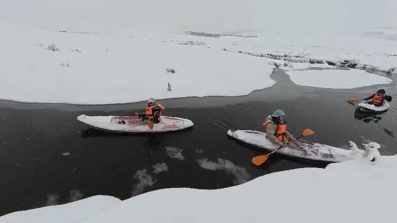 Tokat ile Ordu sınırındaki Perşembe Yaylası’nda hava sıcaklığı eksi 10 dereceye düştü. Doğaseverler buz tutan mendereslerde kano yaptı, ortaya kartpostallık görüntüler çıktı.