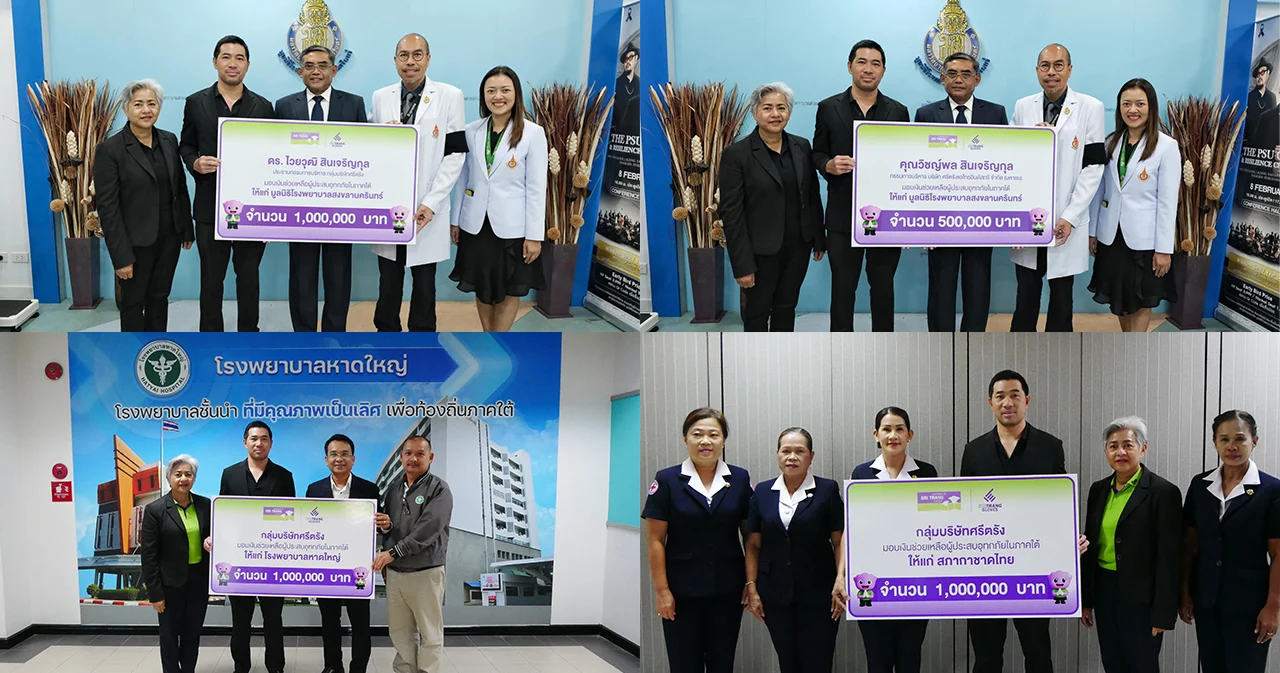 ‘กลุ่มบริษัทศรีตรัง’ ร่วมเดินหน้าเคียงข้างภาคใต้ มอบเงินสนับสนุน 3.5 ล้านบาท แก่โรงพยาบาลหาดใหญ่ สภากาชาดไทย และมูลนิธิโรงพยาบาลสงขลานครินทร์