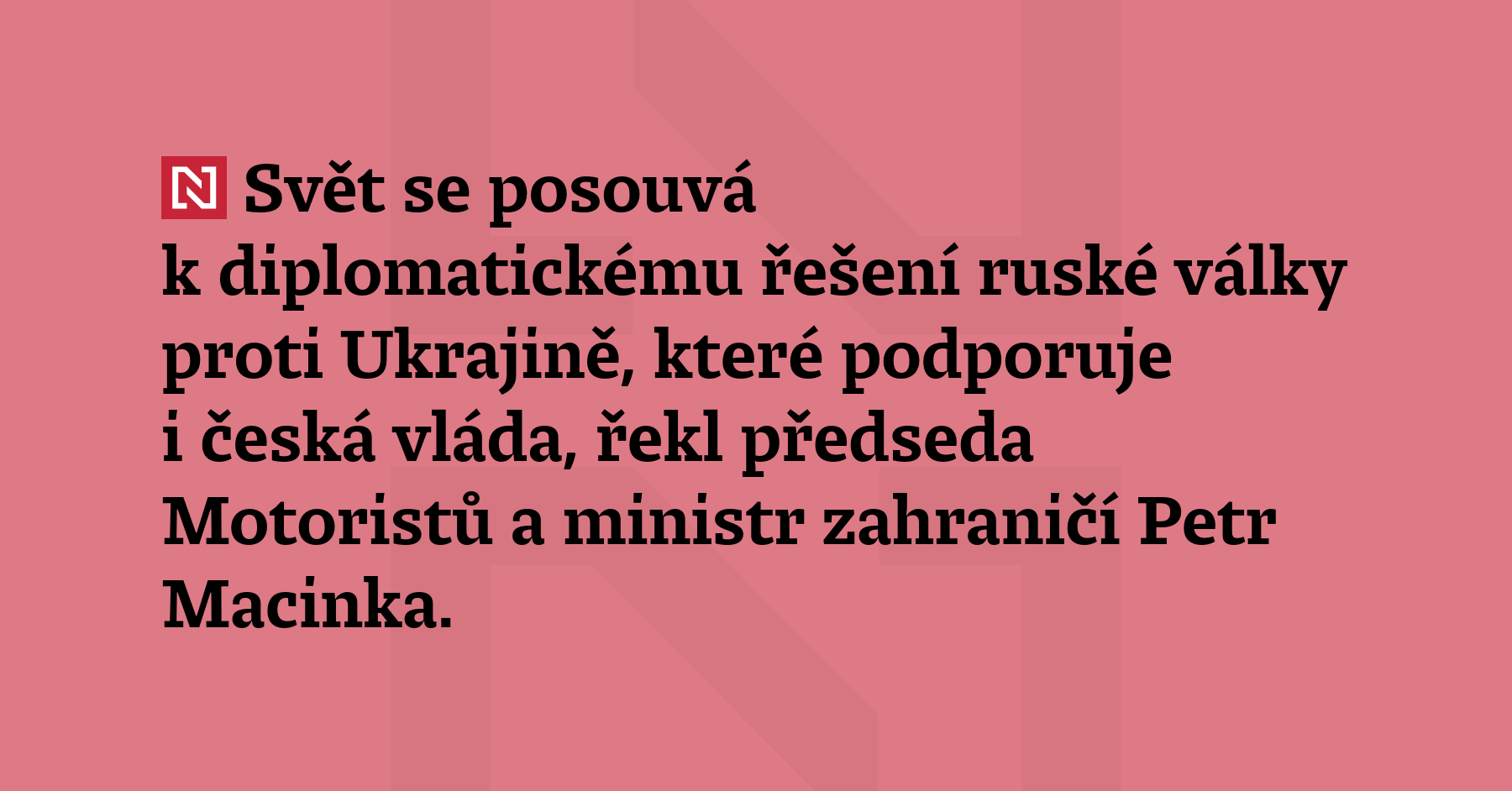 Svět se posouvá k diplomatickému řešení ruské války proti Ukrajině, které podporuje i česká vláda, řekl předseda Motoristů a ministr zahraničí Petr Macinka. Míč je podle něj teď na straně Ruska. (ČT24)