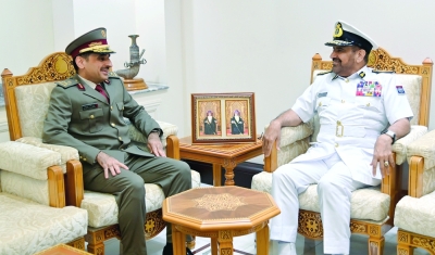 العُمانية: استقبل الفريق الركن بحري عبدالله بن خميس الرئيسي رئيس أركان قوات السُّلطان المسلحة بمكتبه بمعسكر المرتفعة اليوم اللواء ناصر بن أحمد الحمادي نائب رئيس الأركان لشؤون الإدا...