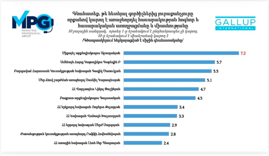 Միքայել սրբազանին 10 առավելագույնից տվել են 7,2 միավոր, Փաշինյանին՝ 4,7. GALLUP International Association-ի հարցումը