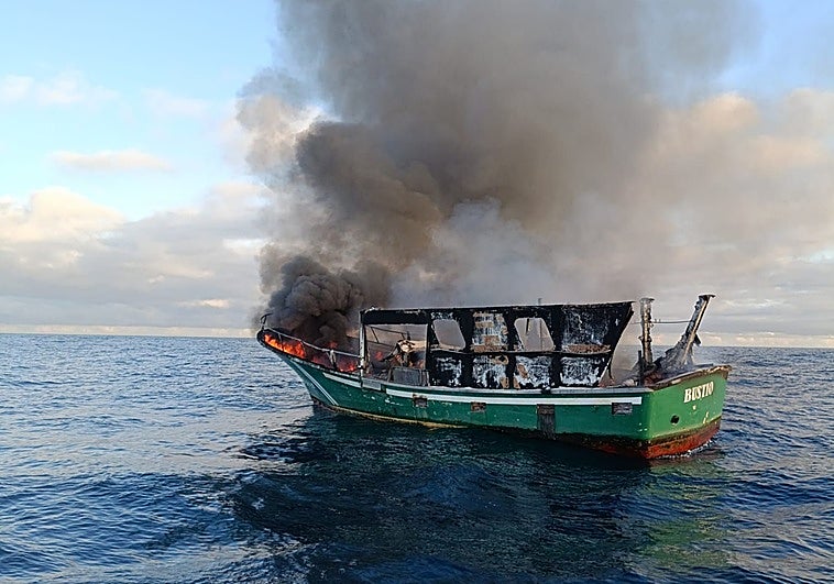 Rescatan a cuatro marineros tras incendiarse ante Llanes el pesquero en el que faenaban