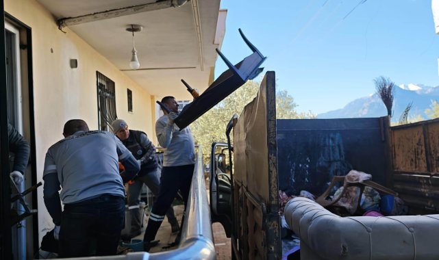 Kepez'de evden 1 kamyon çöp çıkarıldı