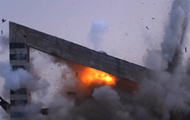 На опублікованих кадрах видно, як боєприпас пробиває бетонне укриття та уражає вертоліт, що знаходиться всередині.