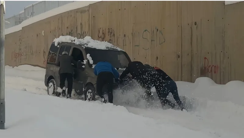 yüksekova’da kara saplanan araç vatandaşlarca kurtarıldı