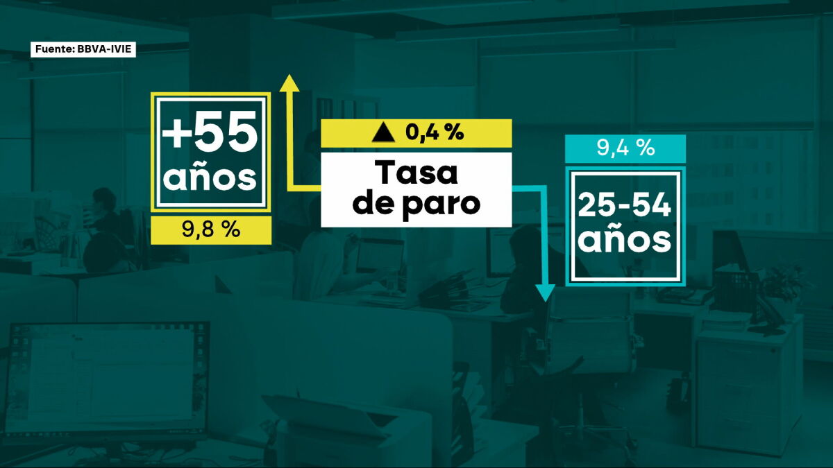 Los detalles Por primera vez en la historia, la tasa de paro de los mayores de 55 años (9,8%) supera a la de las personas de entre 25 y 54 años (9,4%).