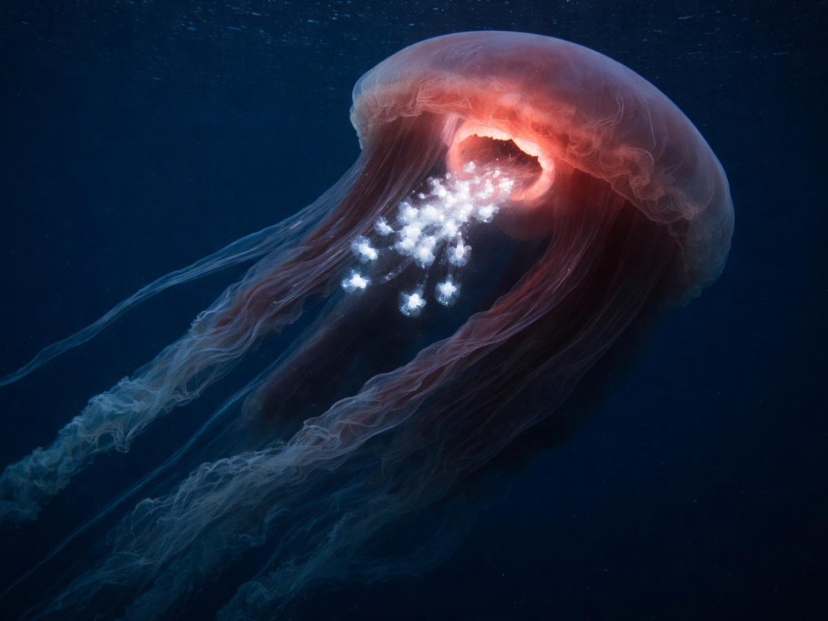 В океанских глубинах обитает существо, которое выглядит как оживший миф и нарушает привычные представления о медузах. Речь идёт о редчайшем гиганте, длина которого сопоставима с автобусом, а способ размножения до сих пор вызывает споры среди биологов. Эти создания почти не попадаются на глаза человеку, поэтому каждое наблюдение становится научным событием. Таинственный гигант из глубин океана Гигантская медуза-призрак Stygiomedusa gigantea была впервые обнаружена в конце XIX века, но с тех пор её фиксировали всего около 120 раз. Такой дефицит наблюдений связан с тем, что вид предпочитает экстремальные глубины — до 6700 метров. Именно там, в толще воды, где зарождалась жизнь на планете, о чём напоминают исследования о том, где находится точка зарождения жизни, эти медузы чувствуют себя наиболее комфортно. Колокол животного достигает одного метра в диаметре, а четыре лентообразные руки могут вытягиваться до 10 метров. Мягкое и податливое тело помогает выдерживать колоссальное давление, которое было бы губительным для большинства других организмов.