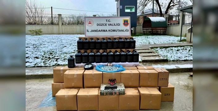 Düzce'de yılbaşı öncesi düzenlenen operasyonda, 900 litre etil alkol ve 2,5 milyon TL değerinde alkol üretim kiti ele geçirildi. Şüphelinin kaçak içki üretip piyasaya sürmeyi planladığı öğrenildi.