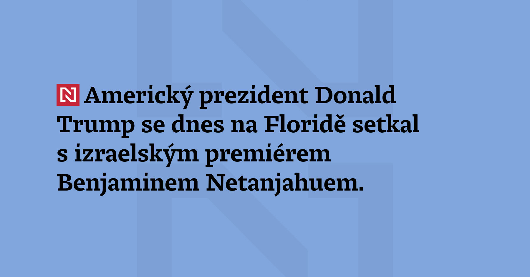 Americký prezident Donald Trump se dnes na Floridě setkal s izraelským premiérem Benjaminem Netanjahuem. Tématem rozhovorů bylo prolomení mrtvého bodu v otázce příměří v Gaze a řešení izraelských obav ohledně Íránu a libanonského hnutí Hizballáh. (Reuters)