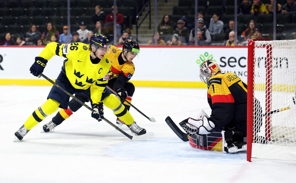 Zviedrijas hokejisti turpina uzvaru gājienu pasaules junioru čempionātā, zem skandināvu celaruļļa pakļūst Vācija