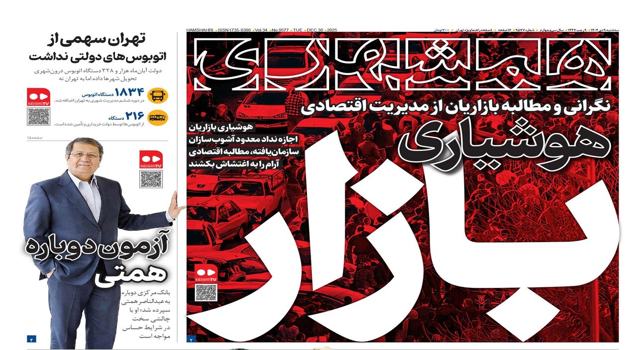 تازه ترین شماره روزنامه همشهری امروز سه شنبه ۹ دی ۱۴۰۴ با مطالب و گزارش هایی درباره مهمترین مسائل روز ایران و جهان منتشر شد.