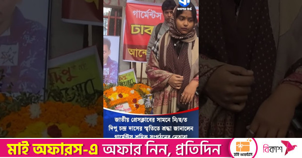 জাতীয় প্রেসক্লাবের সামনে নিহত দিপু চন্দ্র দাসের স্মৃতিতে শ্রদ্ধা জানালেন শ্রমিক সংগঠনের নেতারা