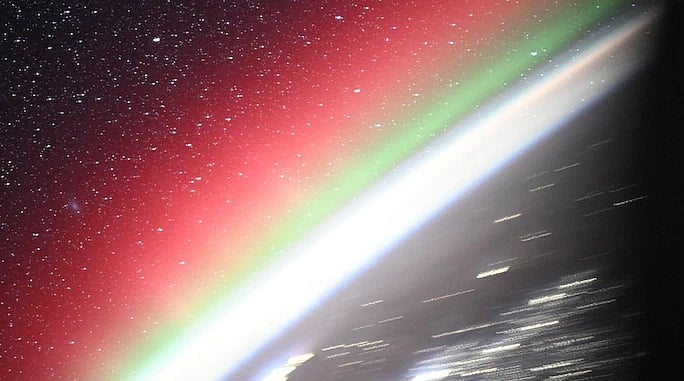 আন্তর্জাতিক মহাকাশ স্টেশন থেকে তোলা ছবিতে একই সঙ্গে ধরা পড়েছে রহস্যময় অ্যান্ড্রোমিডা গ্যালাক্সি ও পৃথিবীর দিগন্তে অরোরা বা মেরুজ্যোতির মৃদু আভা।