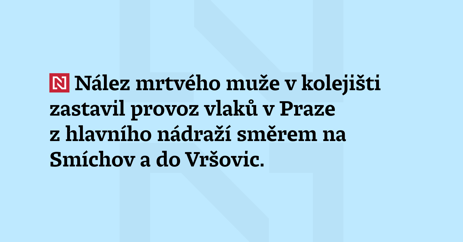 Nález mrtvého muže v kolejišti zastavil provoz vlaků v Praze z hlavního nádraží směrem na Smíchov a do Vršovic. Mrtvý muž je cizinec ročník narození 2002. (ČTK)