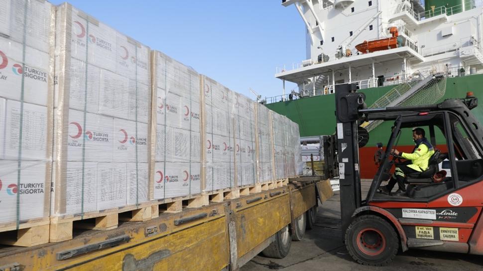 Türkiye Sigorta ve Türk Kızılay iş birliğiyle Dünya İyilik Günü vesilesiyle başlatılan yardım kampanyasında toplanan bağışlar, Kızılay 19. İyilik Gemisi ile Mersin Limanı'ndan hareket ederek Refah Sınır Kapısı üzerinden Gazze'ye giriş yapmaya başladı.