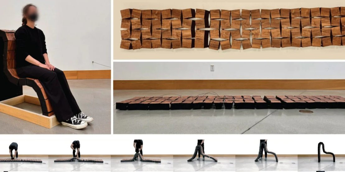Ученые разработали новый материал, который из плоской сетки может превращаться в заданную трехмерную форму после одного потягивания за шнурок. Разработка вдохновлена киригами — японским искусством резки бумаги.