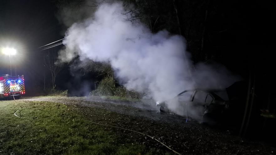 Un turismo BMW, sin ruedas y apoyado sobre bloques de hormigón, ardió de madrugada en una pista de acceso a la carretera PO-534, a su paso por la parroquia de Parada, en el municipio pontevedrés de Silleda.