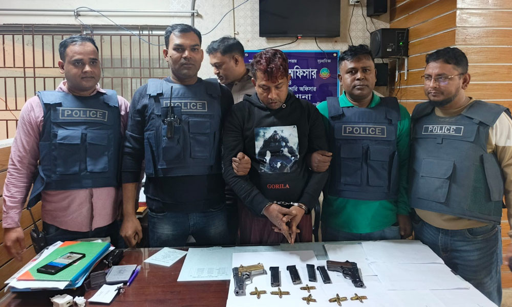 গাজীপুরে ২ বিদেশি পিস্তল-গুলিসহ যুবক গ্রেপ্তার