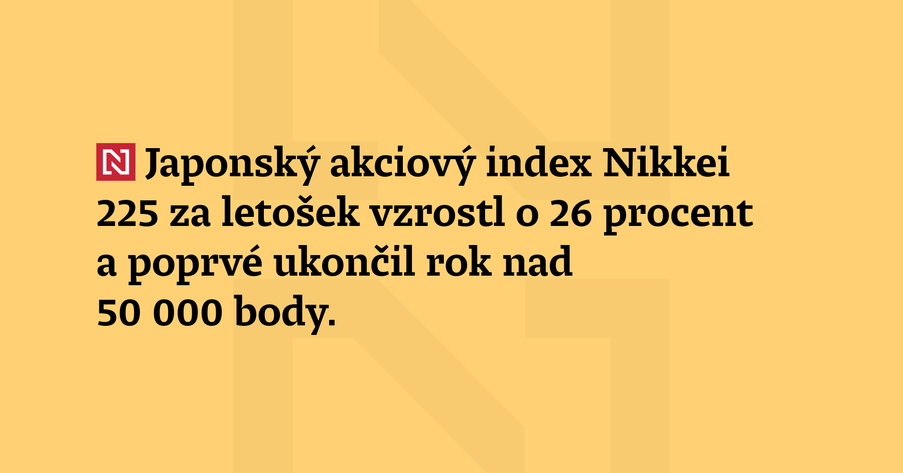 Japonský akciový index Nikkei 225 za letošek vzrostl o 26 procent a poprvé ukončil rok nad 50 000 body. Růst podpořil zájem o umělou inteligenci a očekávání hospodářských opatření nové premiérky Sanae Takaiči. Mezi hvězdy trhu patří výrobce paměťových čipů Kioxia, jehož akcie posílily o 540 procent. Letos je to nejvyšší růst ze všech akcií z globálního indexu MSCI World, upozornila agentura Bloomberg. Dnešek byl v Japonsku […]