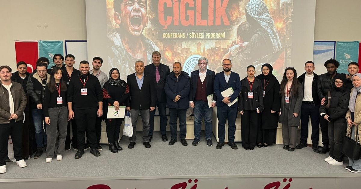 Düzce Üniversitesi öğrenci topluluklarından Gençler Merak Ediyor Topluluğu tarafından Gazze’de yaşananlara dikkat çekmek, toplumsal duyarlılığı artırmak ve farkındalık oluşturmak amacıyla düzenlenen “Gazze: Görmezden Gelinen Çığlık” başlıklı konferans–söyleşi programı, öğrencilerimizin yoğun katılımı ile Akçakoca Bey Siyasal Bilgiler Fakültesi Konferans Salonu’nda gerçekleştirildi.