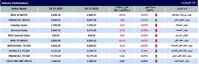 سجل مؤشر بورصة مسقط انخفاضا بمقدار 36 نقطة، وأغلق عند حاجز 5860.38 نقطة، وبلغت قيمة التداول 35.175 مليون ريال عماني، وبلغت القيمة السوقية 31.99 مليار ريال.وتباينت المؤشرات الرئيسية...