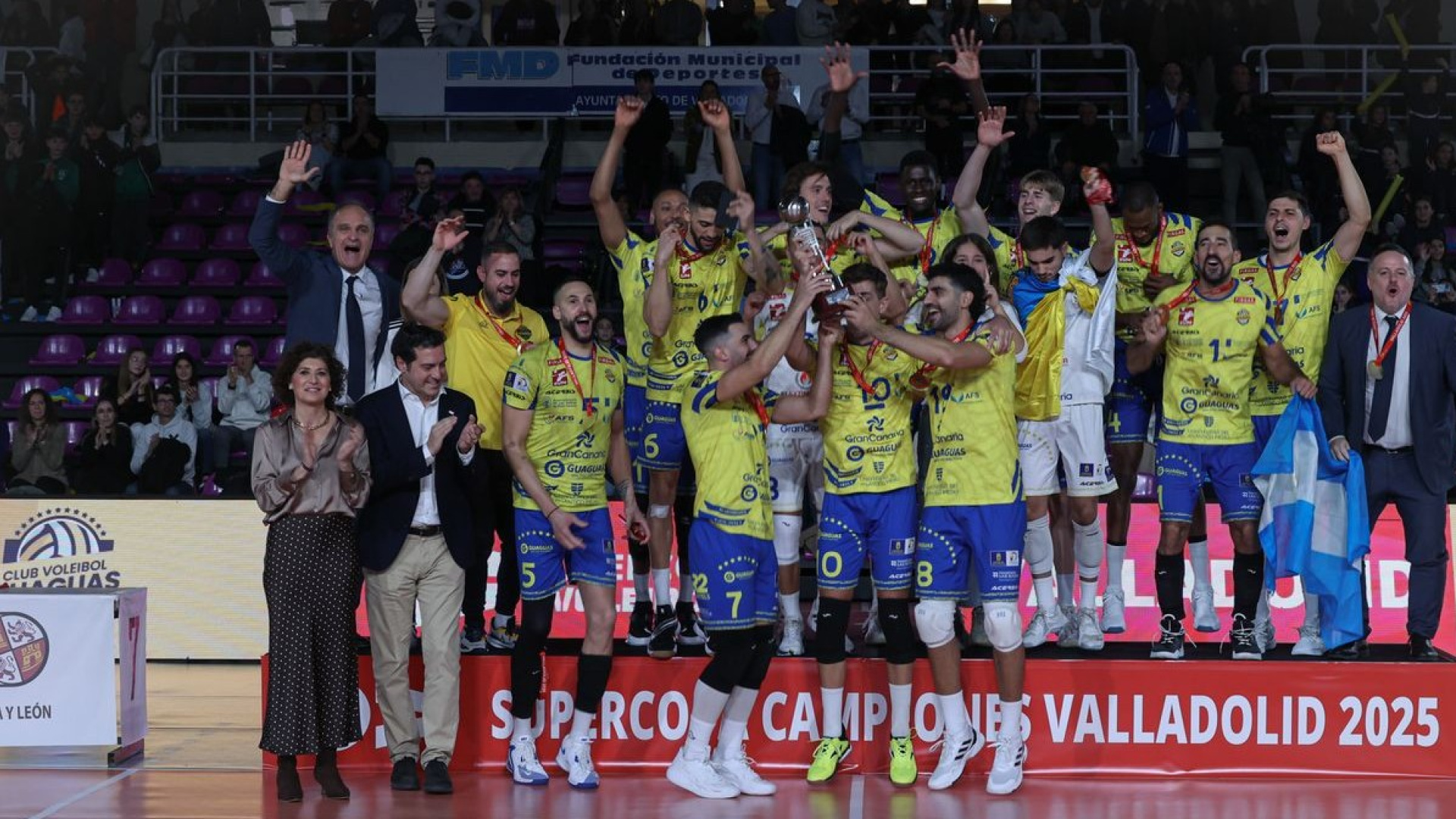 El CV Guaguas despide el año 2025 por todo lo alto, confirmando un ciclo ganador que lo sitúa como referencia absoluta del voleibol nacional. Con tres títulos conquistados en el año natural: Copa del Rey, Superliga Masculina y Supercopa de España, el conjunto grancanario cierra doce meses de excelencia competitiva y abre la temporada 2025-26 con el primer trofeo ya en sus vitrinas. El primer golpe llegó en febrero, con la conquista de la Copa del Rey 2025. El Guaguas mostró su versión más fiable en el torneo del KO y culminó su camino con una sólida victoria en la final ante el Conectabalear CV Manacor, imponiendo su ritmo, su profundidad de banquillo y una madurez competitiva que ya entonces apuntaba a un año grande. La confirmación definitiva llegó en mayo, cuando el equipo de Sergio Miguel Camarero se proclamó campeón de la Superliga Masculina 2024-2025. En la final, el Guaguas fue incontestable ante el Grupo Herce Soria, al que superó por 3-0 en la serie, cerrando el título con autoridad tanto en casa como en un escenario siempre exigente como Los Pajaritos. Una liga ganada desde la regularidad, la ambición y la capacidad de decidir en los momentos clave. Con Copa y Liga ya en el bolsillo, el Guaguas ha cerrado el año natural levantando también la Supercopa de España, el broche perfecto a un 2025 inolvidable. El triunfo ante Soria en Valladolid permite al club despedir el año con pleno de títulos nacionales y comenzar la nueva temporada reforzando su condición de rival a batir desde el primer día. Más allá de los trofeos, el mensaje es claro: el Guaguas no se conforma. El arranque triunfal de la temporada 2025-26 alimenta un objetivo ambicioso pero asumido dentro del vestuario: ganarlo todo a nivel nacional y dar un paso adelante en Europa, donde el gran reto será superar la fase de grupos de la Champions y consolidarse entre los equipos que miran de frente al voleibol continental. Sergio Miguel Camarero, entrenador del CV Guaguas, indica que "estamos muy contentos por lograr este título y felicitar a todos los que nos apoyan durante la temporada". Tres títulos, un año redondo y un futuro inmediato cargado de ilusión. El CV Guaguas cierra 2025 en lo más alto y abre un nuevo curso con hambre de más. El primer partido del 2026 no es moco de pavo, el cuadro amarillo recibe, el 7 de enero a las 19.00 horas, al campeón de Europa: el Sir Sicoma Monini Perugia.
