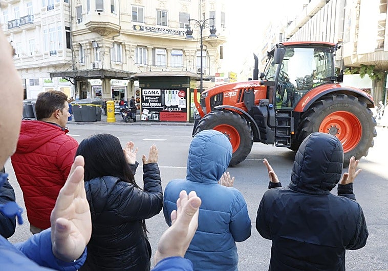 Medio centenar de vehículos agrícolas recorren las calles de la ciudad para exigir a la Comisión Europea que alivie la presión legislativo sobre el campo español y aumente el control sobre los productos procedentes de otros países