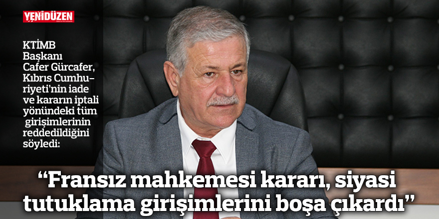 “Fransız mahkemesi kararı, siyasi tutuklama girişimlerini boşa çıkardı” Müteahhitler Birliği Başkanı Cafer Gürcafer, Rum basınında yer alan bir haber üzerine yaptığı değerlendirmede, Fransa’da görülen davada Kıbrıs Cumhuriyeti’nin iade ve kararın iptali yönündeki tüm girişimlerinin reddedildiğini söyledi.