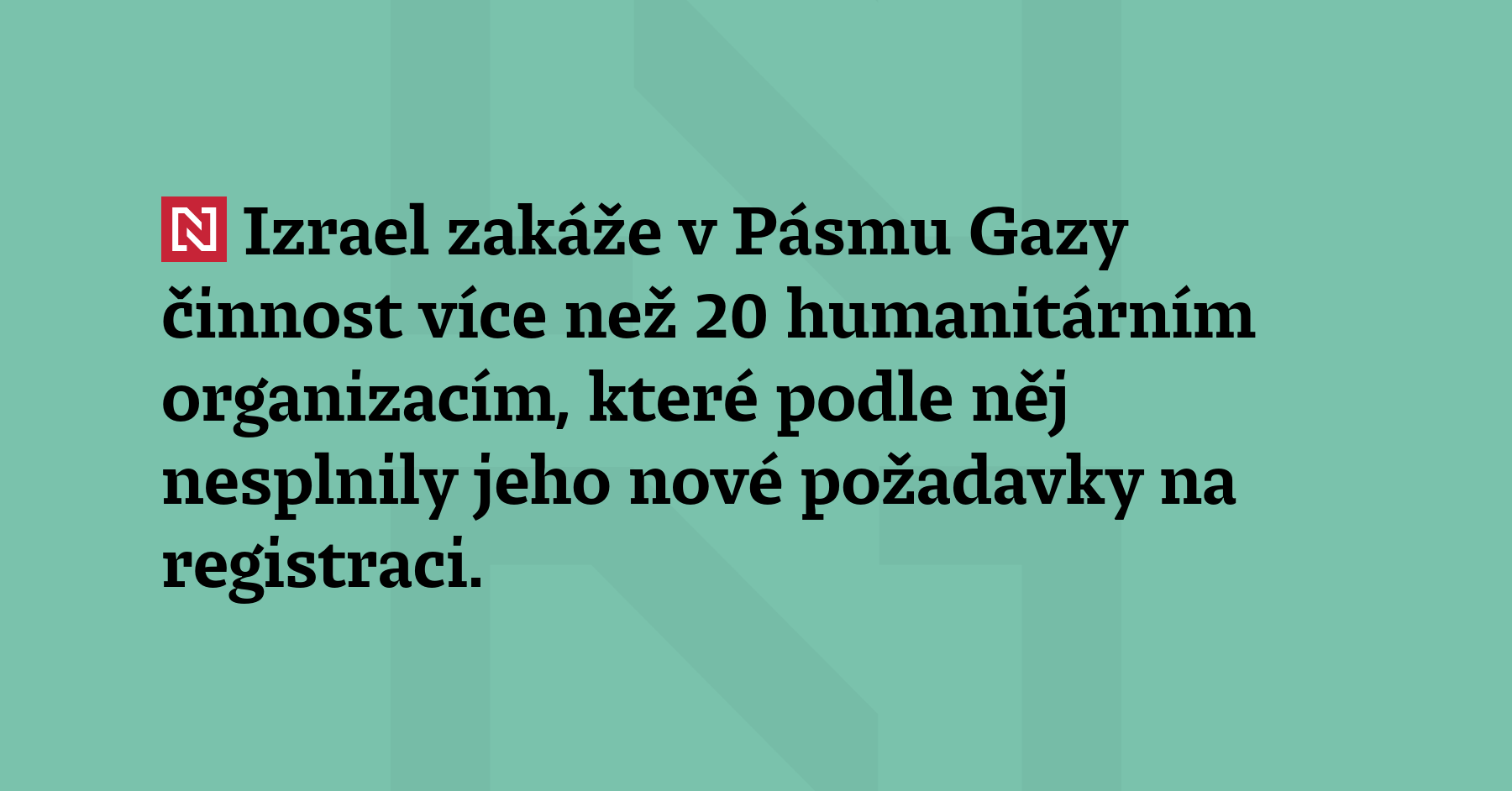 Izrael zakáže v Pásmu Gazy činnost více než 20 humanitárním organizacím, které podle něj nesplnily jeho nové požadavky na registraci. (Boston Globe)
