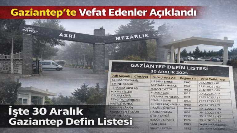Gaziantep’te 30 Aralık 2025 günü hayatını kaybeden 46 vatandaşın defin listesi açıklandı. Asri ve Yeşilkent başta olmak üzere tüm mezarlıklardaki tam liste haberimizde.