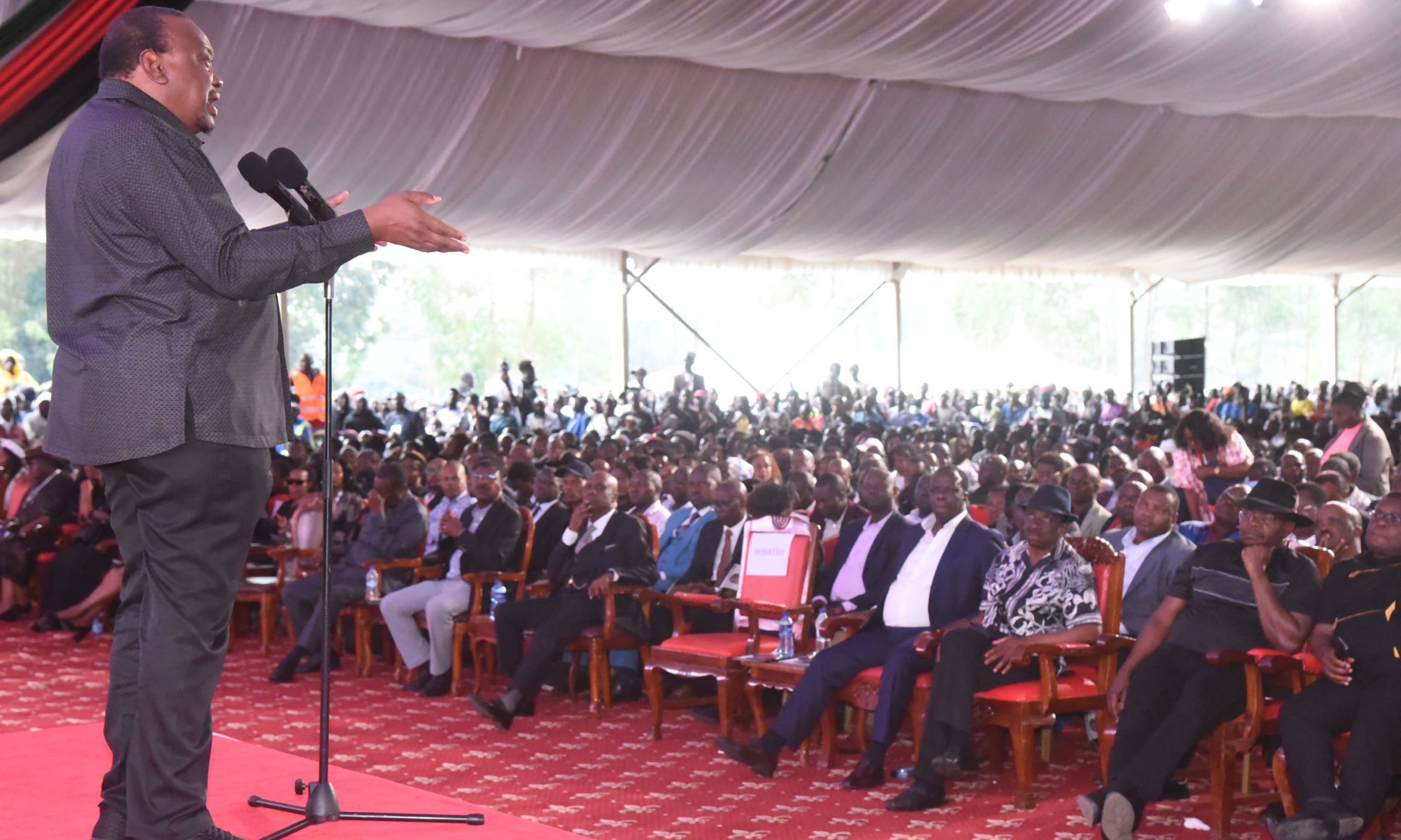 RAIS mstaafu Uhuru Kenyatta amejitokeza wazi kukanusha madai kuwa anahusika katika mipango ya kuvuruga au kudhoofisha Chama cha Orange Democratic Movement (ODM), akisema hana nia wala sababu ya kuingilia masuala ya ndani ya chama hicho. Uhuru alitoa kauli hiyo wakati wa mazishi ya aliyekuwa Mbunge wa Lugari, marehemu Cyrus Jirongo, yaliyofanyika Lumakanda, Kaunti ya Kakamega. Akizungumza mbele ya viongozi wa kitaifa na maelfu ya waombolezaji, Uhuru alisema kumekuwa na juhudi za kumhusisha na njama za kisiasa zinazolenga kuvuruga vyama vya siasa, hususan ODM, jambo alilolisema halina msingi wowote. “Mimi ni mstaafu. Sina haja ya kuvuruga ODM wala chama chochote. Kila chama kina wamiliki wake na njia zake za kushughulikia masuala yake,” alisema Uhuru, kauli iliyochukuliwa kama ujumbe wa moja kwa moja kwa Rais William Ruto na viongozi wa Kenya Kwanza. Uhuru alisisitiza kuwa anachotetea ni kuwepo kwa demokrasia imara ya vyama vingi, ambapo kila chama kinaheshimiwa na kuachiwa nafasi ya kufanya maamuzi bila shinikizo au hila za kisiasa. “Tunachotaka ni demokrasia hai. Vyama vijengwe, si kuvunjwa. Ukishindwa kushawishi watu wajiunge na wewe, usitafute wa kulaumu,” aliongeza. Kauli hiyo ilijiri huku kukiwa na madai ya mara kwa mara kutoka kwa baadhi ya viongozi wa ODM na Kenya Kwanza kwamba kuna njama za nje za kukidhoofisha chama hicho au kukivuruga kutoka ndani. Uhuru alisema madai hayo ni kisingizio cha kushindwa kwa wengine kujenga maridhiano ya kisiasa kwa hiari. “Mtu akishindwa njia ya kujipendekeza kule anataka kujipendekeza, lazima atafute mtu aseme kuwa watu wanakataa kukusikiza kwa sababu ya yule na huyu.” Akimrejelea marehemu Cyrus Jirongo, Uhuru alisema kiongozi huyo alikuwa mfano wa mwanasiasa aliyethamini sana uhuru wa vyama na mazungumzo ya kisiasa, akifanya kazi na pande zote bila kuvunja misingi ya demokrasia. “Cyrus Jirongo aliamini katika heshima ya vyama vya siasa na alifanya kazi kuvuka mipaka ya vyama bila kuua au kumeza vingine. Huo ndio urithi tunaopaswa kuendeleza,” alisema. Uhuru aliwataka viongozi wanaoendeleza migawanyiko ndani ya ODM kuacha kile alichokitaja kuwa ni “fikira mbovu”, na badala yake waende kwa wananchi, wajenge chama chao cha kisiasa, waweke wazi sera zao na wazisimamie kwa ujasiri. “Toa hiyo fikira mbovu, enda zungumza na wananchi. Unda na usimamishe chama chako. Kuwa na sera zako kama mwanaume,” alisema Uhuru. Uhuru pia aliwakosoa vikali viongozi ambao, kwa mtazamo wake, huzunguka katika ulingo wa kisiasa wakitoa kauli za uchochezi zisizo na mchango wowote wa kuimarisha mshikamano wa kitaifa wala kukuza demokrasia. “Sio kuzunguka huku na kule ukitoa mambo ya upuzi ambayo haipeleki nchi mbali,” alisema. Akisisitiza maono yake kwa taifa hata baada ya kustaafu, Uhuru aliwakumbusha Wakenya umuhimu wa kudumisha umoja wa kitaifa, demokrasia na kuheshimu uamuzi wa wananchi. “Tunataka nchi iliyo na umoja, tunataka demokrasia, na tunataka matakwa ya wananchi yaheshimiwe,” aliongeza. Huku akikumbusha wakosoaji wake kuwa sasa ni kiongozi mstaafu, Uhuru aliweka wazi kuwa kustaafu hakumaanishi udhaifu wala kukubali kudharauliwa. “Sitaki kusema mengi kwa sababu mimi ni mstaafu, lakini kwa kusema mstaafu sisemi uniingize kidole kwa macho; mimi pia nitakuingiza. Tuheshimiane,” alionya. Kauli za Uhuru zilijiri wakati ambapo mvutano unaendelea kushuhudiwa ndani ya ODM, ambapo baadhi ya viongozi wakuu wa chama hicho wamemlaumu hadharani kwa madai ya kuingilia masuala ya ndani ya chama na kuchochea migawanyiko. Uongozi wa juu wa ODM, ukiongozwa na mwenyekiti wake Gavana Gladys Wanga pamoja na Kiongozi wa Wachache katika Bunge la Kitaifa Junet Mohamed, umemshutumu Uhuru kwa madai ya kupanga kutumia wanachama wa ndani ya chama hicho kusababisha migawanyiko ya kisiasa katika ODM.