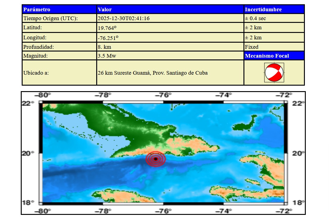 Un sismo perceptible de magnitud 3,5 se registró en la provincia de Santiago de Cuba. The post Sismo perceptible sacude el oriente de Cuba, reporta el CENAIS appeared first on CubaNoticias360 .
