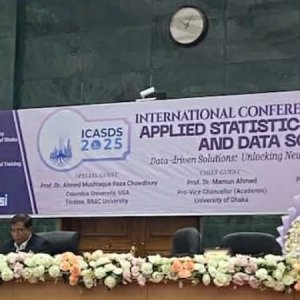 ঢাকা বিশ্ববিদ্যালয়ের নবাব নওয়াব আলী চৌধুরী সিনেট ভবনে ২৮-২৯ ডিসেম্বর অনুষ্ঠিত হয়েছে আন্তর্জাতিক ফলিত পরিসংখ্যান ও ডেটা সায়েন্স সম্মেলন। এটি ঢাকা বিশ্ববিদ্যালয়ের পরিসংখ্যান গবেষণা ও শিক্ষণ ইনস্টিটিউট কর্তৃক ‘ডেটা-চালিত সমাধান: নতুন সম্ভাবনার উন্মোচন’ প্রতিপাদ্যে আয়োজন করা হয়। দুই দিনব্যাপী এই আন্তর্জাতিক সম্মেলনে দেশি ও বিদেশি শিক্ষাবিদ, গবেষক, নীতিনির্ধারক এবং পেশাজীবীরা... বিস্তারিত