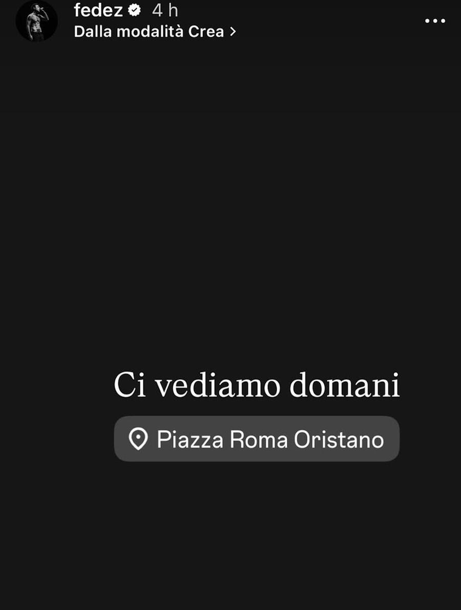 «Ci vediamo domani»: con tre parole su Instagram Fedez annuncia il suo concerto di Capodanno a Oristano