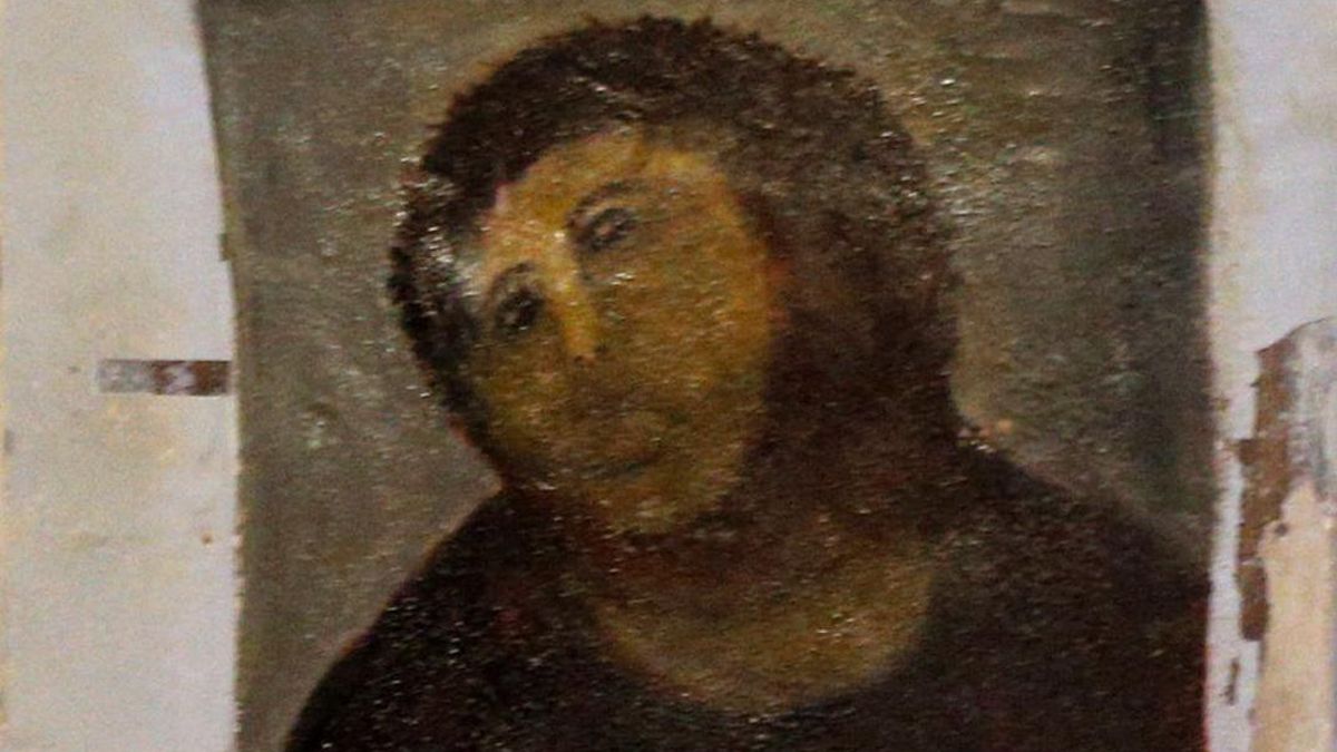 Tras los esfuerzos de restauración de Cecilia Giménez, la pintura centenaria de Jesucristo acabó ganándose el sobrenombre de "Ecce Mono".