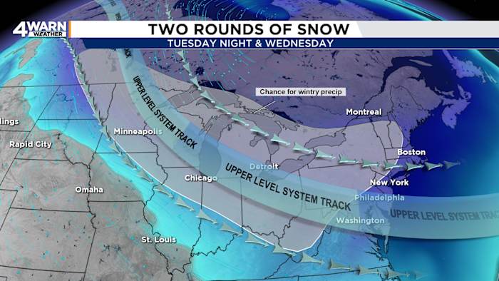 Another round of light snow is moving into Southeast Michigan Tuesday evening, adding to a wintry pattern that will carry through New Year’s Eve and usher in a bitterly cold start to the new year.