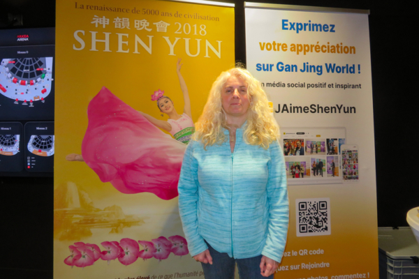 2025年12月30日下午,职业融入中心经理Christelle Chambolle观看了神韵国际艺术团在法国波尔多阿凯亚剧场(Arkea Arena)的第五场演出。(盛明/大纪元)