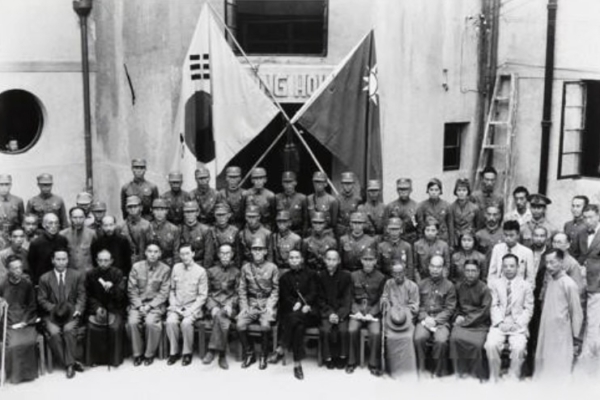 1940年9月17日,韩国光复军在中国重庆举行成立仪式时合影留念。(韩国独立纪念馆提供/韩联社)