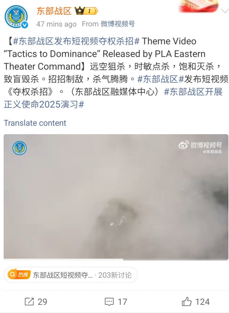 中國對台針對性軍演未宣布結束 昨102機艦擾台