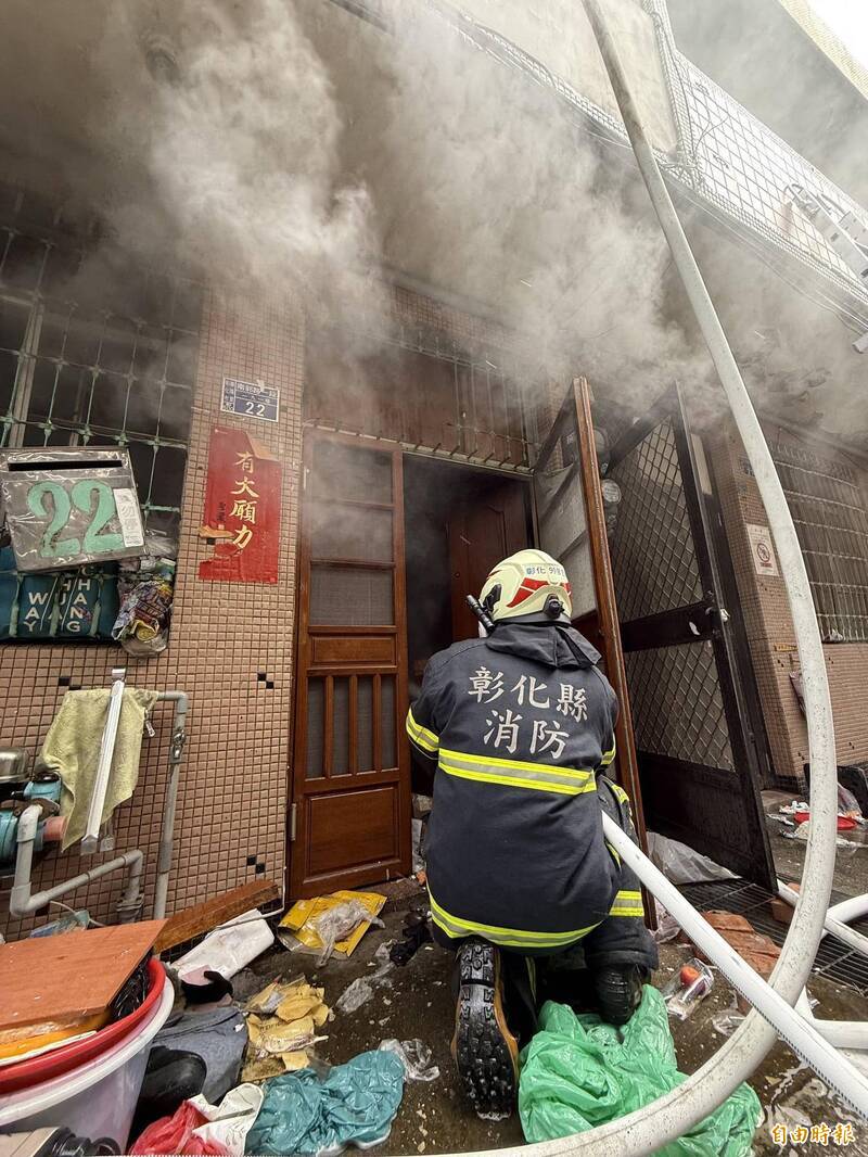 彰市民宅大火濃煙竄天 消防員搶救摔傷