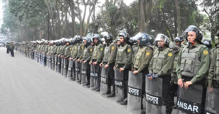সাবেক প্রধানমন্ত্রী ও বিএনপি চেয়ারপারসন বেগম খালেদা জিয়ার জানাজা-দাফন ঘিরে ৫০ প্লাটুন আনসার ও টিডিপি মোতায়েন করা হয়েছে। বুধবার (৩১ ডিসেম্বর) বাংলাদেশ আনসার ও গ্রাম প্রতিরক্ষা বাহিনীর উপ-পরিচালক ও গণসংযোগ কর্মকর্তা মো. আশিকউজ্জামান এ তথ্য জানান। আশিকউজ্জামান জানান, জানাজা উপলক্ষে সার্বিক নিরাপত্তা নিশ্চিত করতে পূর্বপরিকল্পিত ও সমন্বিত নিরাপত্তা ব্যবস্থা গ্রহণ করা হয়। এরই অংশ হিসেবে বাহিনীর বিভিন্ন ইউনিটের মোট ১ হাজার ৫০০ সদস্যকে দায়িত্বপূর্ণ স্থানে মোতায়েন করা হয়। নিরাপত্তা দায়িত্বের আওতায় ৩০০ জন আনসার ব্যাটালিয়ন সদস্য, ১ হাজার জন অঙ্গীভূত আনসার এবং ২০০ জন নগর প্রতিরক্ষা দল (টিডিপি) সদস্য মোতায়েন করা হয়। তারা জানাজাস্থল, আশপাশের সড়ক, প্রবেশ ও বহির্গমন পথ এবং গুরুত্বপূর্ণ পয়েন্টে দায়িত্ব পালন করেন, যেন জনসাধারণ নির্বিঘ্নে ধর্মীয় আনুষ্ঠানিকতায় অংশগ্রহণ করতে পারেন। সামগ্রিক নিরাপত্তা ব্যবস্থাপনায় আনসার ও টিডিপি সদস্যরা ভিড় নিয়ন্ত্রণ, শৃঙ্খলা রক্ষা, যানবাহন ব্যবস্থাপনা এবং জরুরি পরিস্থিতিতে তাৎক্ষণিক সহায়তা প্রদানে সক্রিয় ভূমিকা পালন করেন। সমন্বিত দায়িত্ব পালনের ফলে কোথাও কোনো অপ্রীতিকর ঘটনা ছাড়াই শান্তিপূর্ণ পরিবেশে জানাজা সম্পন্ন হয়, যা বাহিনীর পেশাদারত্ব ও সক্ষমতার উজ্জ্বল দৃষ্টান্ত। সংশ্লিষ্ট কর্তৃপক্ষের মতে, জাতীয়ভাবে গুরুত্বপূর্ণ ও আবেগঘন এ ধরনের আয়োজনে আনসার ও টিডিপির দায়িত্বশীল উপস্থিতি জননিরাপত্তা নিশ্চিত করার পাশাপাশি রাষ্ট্রীয় শৃঙ্খলা বজায় রাখতে গুরুত্বপূর্ণ ভূমিকা রাখে। ভবিষ্যতেও এ ধরনের জনসমাগমপূর্ণ কর্মসূচিতে বাহিনীর সদস্যরা সর্বোচ্চ পেশাদারত্ব ও নিষ্ঠার সঙ্গে দায়িত্ব পালন অব্যাহত রাখবে বলে তারা আশাবাদ ব্যক্ত করেন। এদিকে সাবেক এই প্রধানমন্ত্রী খালেদা জিয়ার প্রতি শেষ শ্রদ্ধা জানাতে এবং তার জানাজায় অংশ নিতে পাকিস্তানের স্পিকার ও ভারতের পররাষ্ট্রমন্ত্রী, ভুটানের পররাষ্ট্রমন্ত্রী, মালদ্বীপের প্রেসিডেন্টের বিশেষ দূত ও দেশটির উচ্চশিক্ষামন্ত্রী, শ্রীলঙ্কা ও নেপাল সরকারের একজন প্রতিনিধিসহ বেশ কয়েকটি দেশের মন্ত্রী ও বিশেষ দূত ঢাকায় আসছেন। সাবেক এই প্রধানমন্ত্রীর জানাজা ও দাফন সুষ্ঠুভাবে সম্পন্ন করতে এবং নিশ্ছিদ্র নিরাপত্তা নিশ্চিতে মানিক মিয়া অ্যাভিনিউসহ রাজধানীতে ২৭ প্লাটুন বিজিবি মোতায়েন করা হয়েছে। জানাজার পর বিকেল সাড়ে ৩টার দিকে শহীদ রাষ্ট্রপতি, বীর মুক্তিযোদ্ধা জিয়াউর রহমানের পাশে বেগম খালেদা জিয়াকে রাষ্ট্রীয় মর্যাদায় সমাহিত করা হবে। এ সময় বেগম খালেদা জিয়ার পরিবারের সদস্য, রাষ্ট্রীয় গুরুত্বপূর্ণ ব্যক্তি, সরকারের দায়িত্বপ্রাপ্ত ক