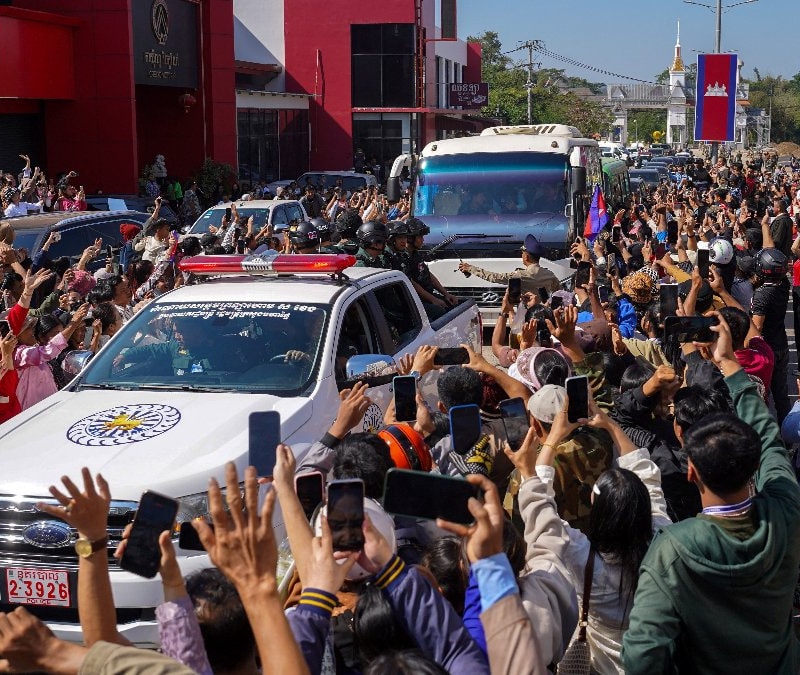 Tayland, 155 gün boyunca esir tuttuğu 18 Kamboçyalı askeri iki ülke arasında varılan ateşkesin ardından ülkelerine iade etti.