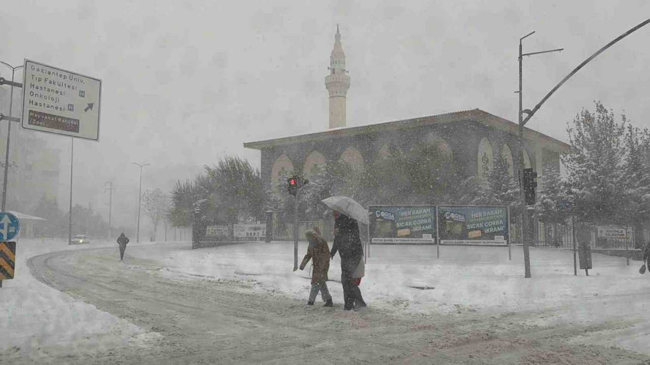 Gaziantep'te günlerdir beklenen ve gece saatlerinde başlayan yoğun kar yağışı, etkisini arttırarak devam ediyor.