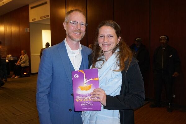 2025年12月30日,Chris Leonard与妻子Amanda Leonard一同观看了神韵世界艺术团在萨凡纳市民中心约翰尼·默瑟剧院(Johnny Mercer Theatre at Savannah Civic Center)的演出。(王琼/大纪元)