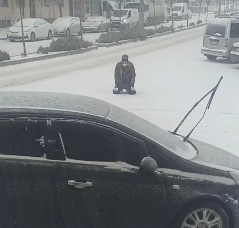 kar yağışını görünce cadde ortasında secde etti
