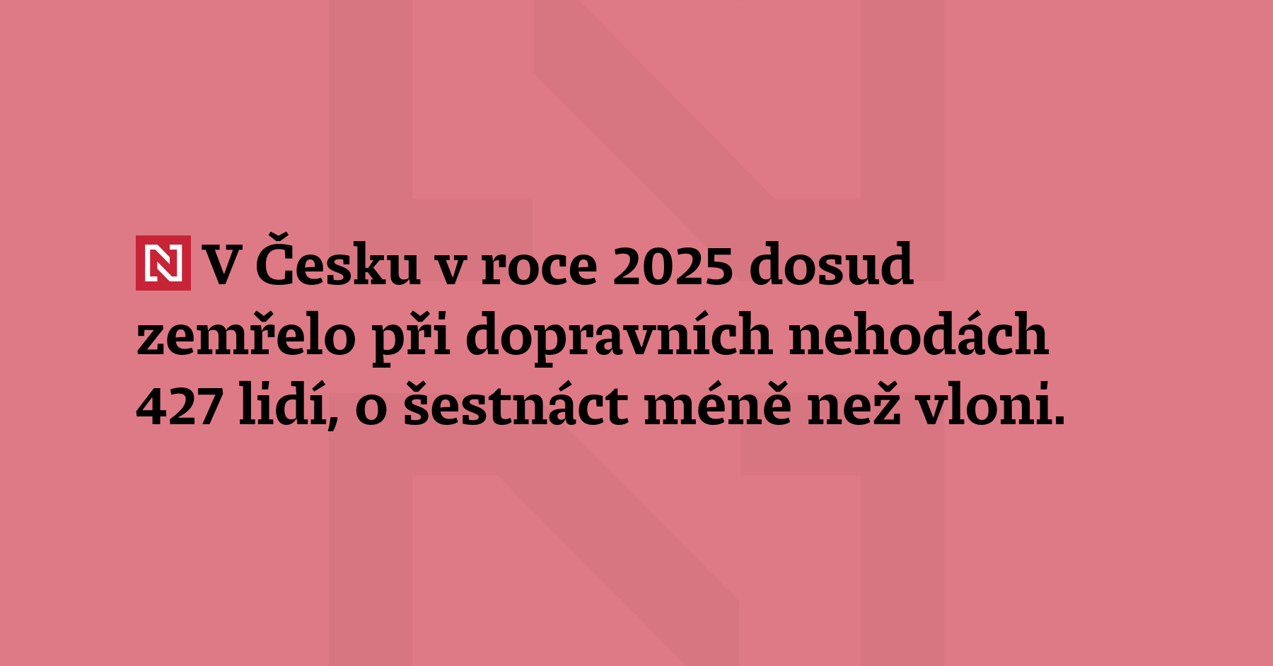 V Česku v roce 2025 dosud zemřelo při dopravních nehodách 427 lidí, o šestnáct méně...