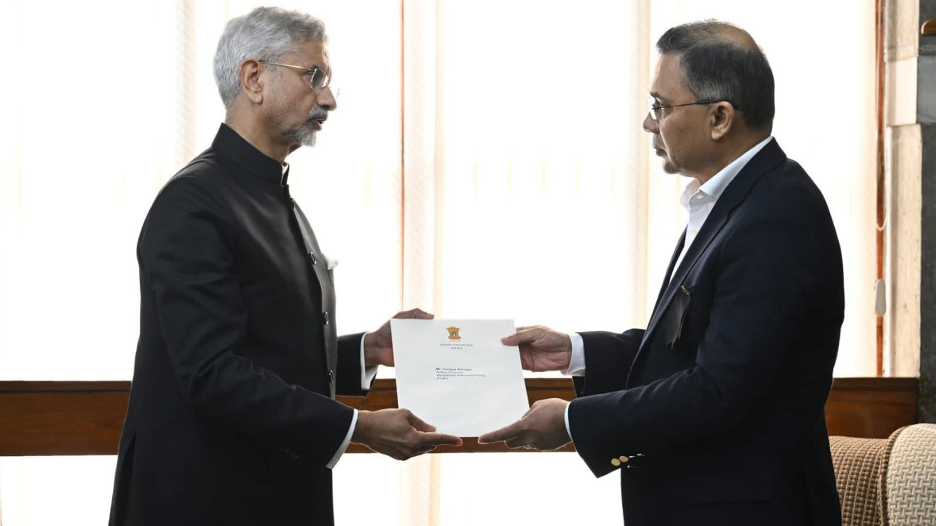 বিএনপির ভারপ্রাপ্ত চেয়ারম্যান তারেক রহমানের কাছে ভারতের প্রধানমন্ত্রী নরেন্দ্র মোদির ব্যক্তিগত চিঠি হস্তান্তর করেছেন দেশটির পররাষ্ট্রমন্ত্রী ড. এস জয়শঙ্কর।বুধবার (৩১ ডিসেম্বর) বেলা সাড়ে ১১টার দিকে ভারতীয় বিমানবাহিনীর বিশেষ একটি ফ্লাইটে ঢাকায় পৌঁছান ভারতের পররাষ্ট্রমন্ত্রী। সাবেক প্রধানমন্ত্রী বেগম খালেদা জিয়ার প্রতি শেষ শ্রদ্ধা জানাতে ঢাকায় আসেন তিনি। ঢাকায় পৌঁছে সাবেক প্রধানমন্ত্রী বেগম খালেদা জিয়ার ছেলে এবং বিএনপির ভারপ্রাপ্ত চেয়ারম্যান তারেক রহমানের সঙ্গে সাক্ষাৎ করেন ড. এস জয়শঙ্কর। এ সময় ভারতের প্রধানমন্ত্রী নরেন্দ্র মোদির পক্ষ থেকে তারেক রহমানের কাছে একটি ব্যক্তিগত চিঠি হস্তান্তর করেন। আরও পড়ুন: বেগম জিয়ার জানাজা: মানিক মিয়ায় থাকছেন যেসব দেশের রাষ্ট্রদূত ও হাইকমিশনার সাক্ষাতে ভারতের সরকার ও জনগণের পক্ষ থেকে বেগম খালেদা জিয়ার মৃত্যুতে গভীর শোক ও সমবেদনা জানানো হয়। একই সঙ্গে দ্বিপক্ষীয় সম্পর্কের ক্ষেত্রে বেগম খালেদা জিয়ার আদর্শ ও মূল্যবোধ ভবিষ্যতেও দিকনির্দেশনা দেবে—এমন প্রত্যাশার কথা ব্যক্ত করা হয়। রাজধানীর এভারকেয়ার হাসপাতালে চিকিৎসাধীন অবস্থায় মঙ্গলবার (৩০ ডিসেম্বর) সকাল ৬টায় শেষ নিঃশ্বাস ত্যাগ করেন সাবেক তিনবারের প্রধানমন্ত্রী বেগম খালেদা জিয়া। আরও পড়ুন: বেগম জিয়ার জানাজায় অংশ নিতে ঢাকায় পাকিস্তানের স্পিকার বেগম খালেদা জিয়া ১৯৪৫ সালের ১৫ আগস্ট জন্মগ্রহণ করেন। তিনি বাংলাদেশের প্রথম নারী প্রধানমন্ত্রী ও বেনজির ভুট্টোর পর মুসলিম বিশ্বের দ্বিতীয় নারী প্রধানমন্ত্রী।