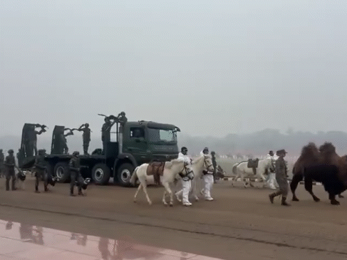 गणतंत्र दिवस 2026 की परेड में इस बार सेना की पशु टुकड़ी भी मार्च करेगी। इसके लिए पहली बार सेना की रीमाउंट एंड वेटरनरी कॉर्प्स (RVC) की टुकड़ी को विशेष रूप से चुना गया है। इसका उद्देश्य देश की सबसे कठिन सीमाओं की रक्षा में पशुओं की महत्वपूर्ण भूमिका को सामने लाना है। इस टुकड़ी में दो बैक्ट्रियन ऊंट, चार जांस्कर टट्टू (पोनी), चार शिकारी पक्षी (रैप्टर्स), भारतीय नस्ल के 10 सेना के कुत्ते, तथा वर्तमान में सेवा में तैनात छह पारंपरिक सैन्य कुत्ते शामिल होंगे। ये सभी मिलकर भारतीय सेना के संचालन तंत्र में परंपरा, नवाचार और आत्मनिर्भरता का संगम प्रस्तुत करेंगे। नेतृत्व मजबूत बैक्ट्रियन ऊंट करेंगे टुकड़ी का नेतृत्व मजबूत बैक्ट्रियन ऊंट करेंगे। इन्हें हाल ही में लद्दाख के ठंडे इलाकों के ऑपरेशंस के लिए शामिल किया गया है। अत्यधिक ठंड, कम ऑक्सीजन और 15,000 फीट से अधिक ऊंचाई वाले क्षेत्रों के लिए अनुकूल ये ऊंट 250 किलोग्राम तक भार उठा सकते हैं और कम पानी व चारे में लंबी दूरी तय कर सकते हैं। इनके शामिल होने से वास्तविक नियंत्रण रेखा (LAC) पर रेतीले और खड़ी ढलानों वाले इलाकों में रसद सहायता और गश्त की क्षमता में बढ़ोतरी हुई है। मार्च में जांस्कर टट्टू भी होंगे जो लद्दाख की एक दुर्लभ और स्वदेशी पर्वतीय नस्ल है। आकार में छोटे होने के बावजूद ये टट्टू असाधारण सहनशक्ति के लिए जाने जाते हैं। ये 15,000 फीट से अधिक ऊंचाई और माइनस 40 डिग्री सेल्सियस तक के तापमान में 40 से 60 किलोग्राम वजन लेकर लंबी दूरी तय कर सकते हैं। वर्ष 2020 से इनके शामिल होने के बाद, ये सियाचिन ग्लेशियर जैसे अत्यंत कठिन इलाकों में सेवाएं दे रहे हैं। रसद कार्यों के अलावा, जांस्कर टट्टू घुड़सवार गश्त में भी अहम भूमिका निभाते हैं और कई बार एक दिन में 70 किलोमीटर तक की दूरी तय करते हुए जोखिम भरे क्षेत्रों में सैनिकों के साथ चलते हैं। शिकारी पक्षी (रैप्टर्स) भी शामिल होंगे परेड में चार शिकारी पक्षी (रैप्टर्स) भी शामिल होंगे। ये बर्ड स्ट्राइक कंट्रोल और निगरानी में उपयोग किए जाते हैं। यह सुरक्षा के लिए प्राकृतिक क्षमताओं के उपयोग को दर्शाता है। परेड का एक प्रमुख आकर्षण होंगे सेना के कुत्ते, जिन्हें भारतीय सेना के “मूक योद्धा” भी कहा जाता है। इन्हें RVC सेंटर एंड कॉलेज, मेरठ में पाला, प्रशिक्षित और तैयार किया जाता है। ये कुत्ते आतंकवाद-रोधी अभियानों, विस्फोटक और बारूदी सुरंगों की पहचान, ट्रैकिंग, पहरेदारी, आपदा राहत तथा खोज-और-बचाव अभियानों में सैनिकों का साथ देते हैं। दशकों से सेना के कुत्तों और उनके हैंडलर्स ने युद्ध और मानवीय अभियानों में अद्वितीय साहस दिखाया है और इसके लिए कई वीरता पुरस्कार और सम्मान प्राप्त किए हैं। आत्मनिर्भर भारत और मेक इन इंडिया की सो